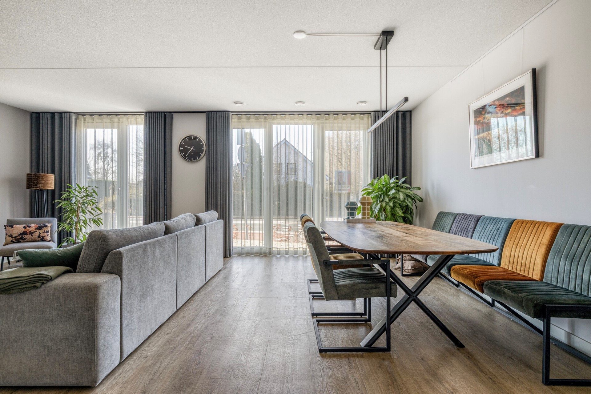 • Dankzij de grote raampartijen en screens aan de buitenzijde is er veel lichtinval en comfort.
