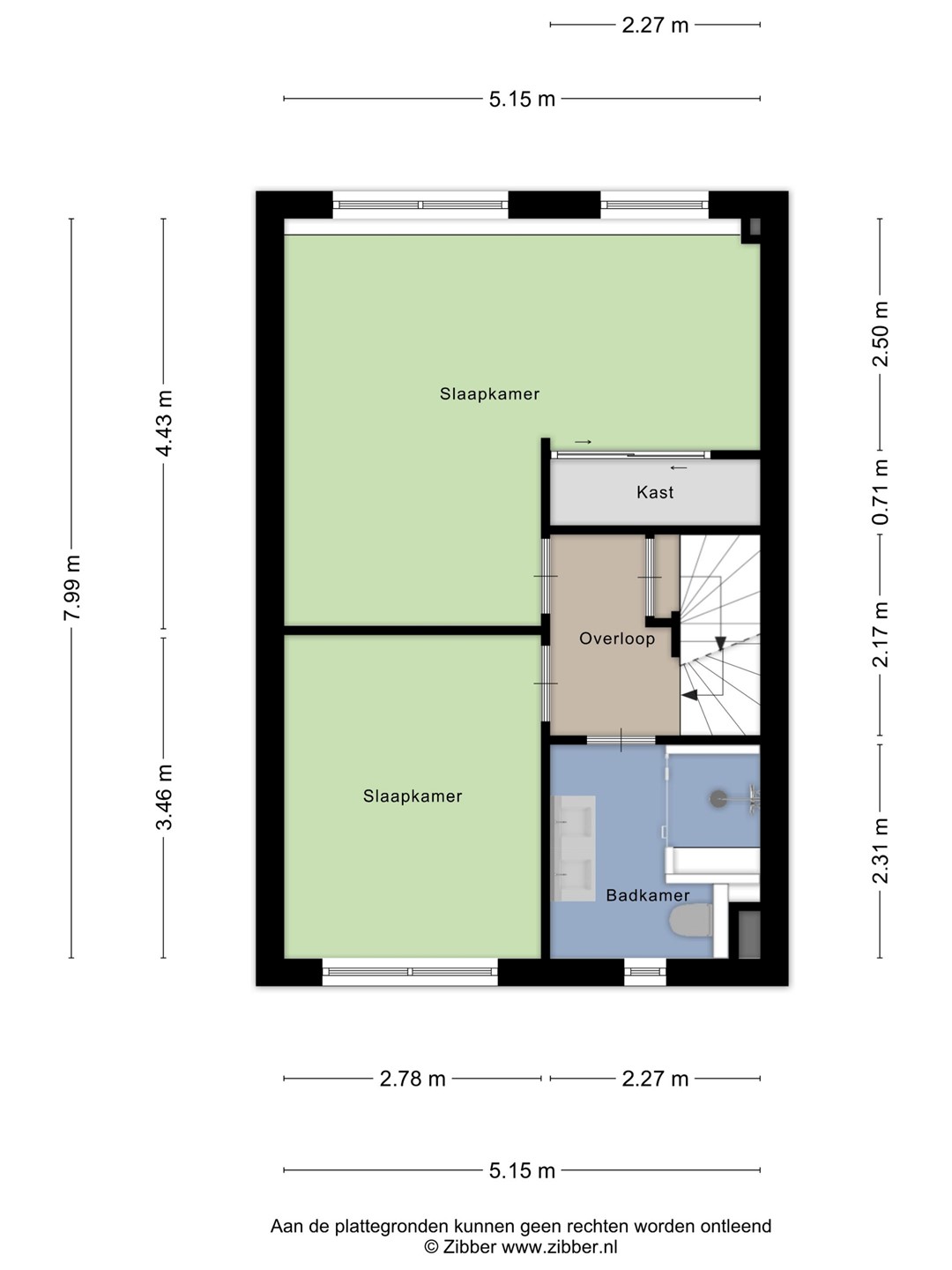 • Twee slaapkamers, allen voorzien van laminaat ca. 9.6 m² en 18.43 m²