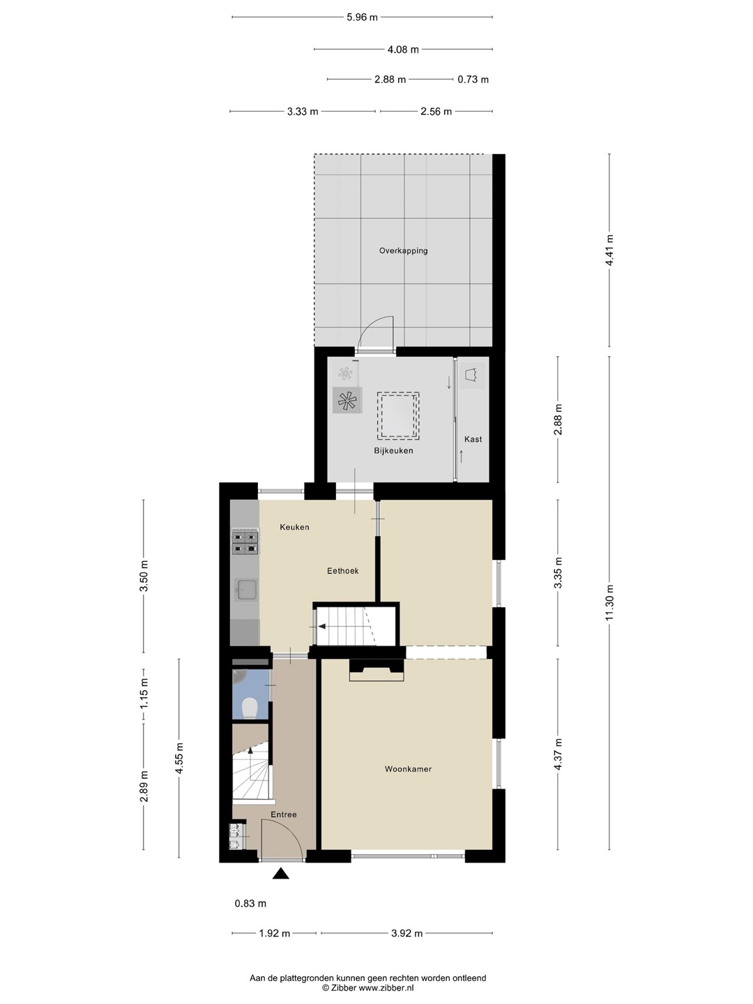 • Toegang tot toilet met fontein, keuken en trap naar bovenverdieping